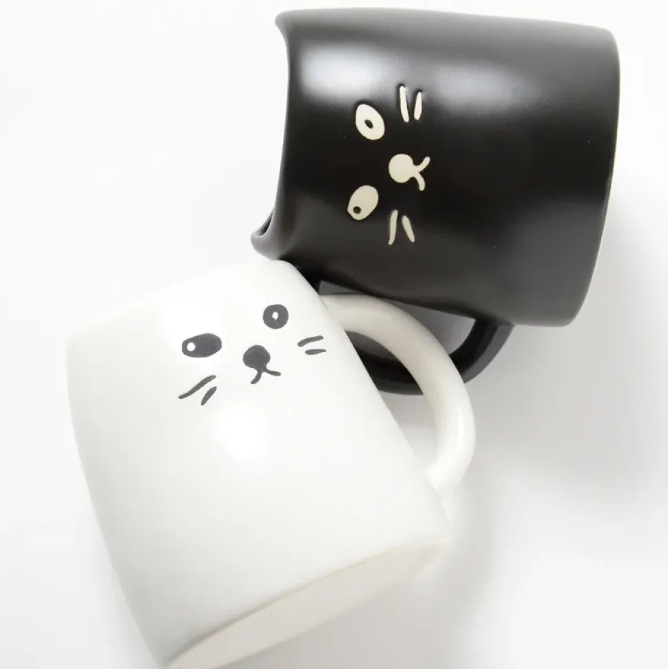 Specifications: set of 2 cat mugs (one black, one white)