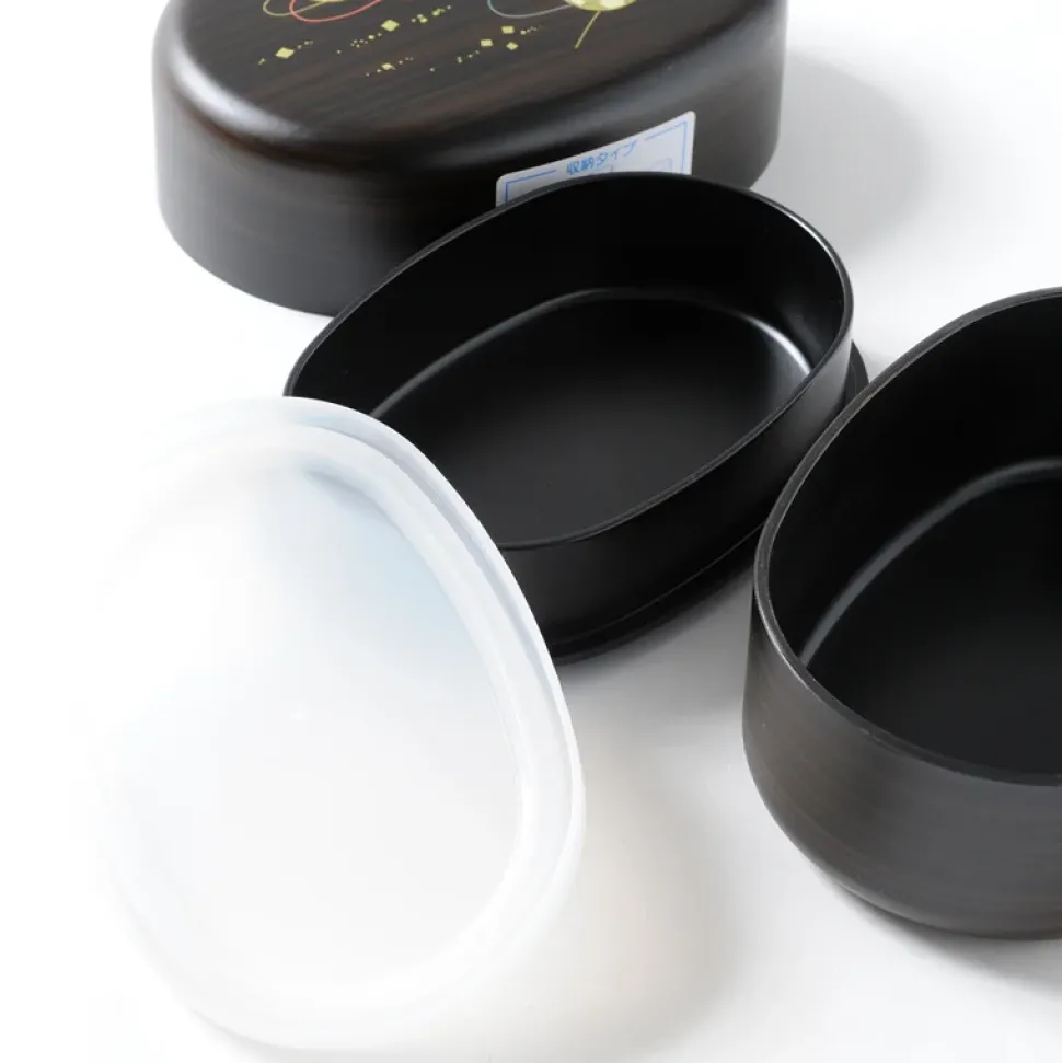 Product Name: Temari Black Wood Patterned 2-Tier Bento Box