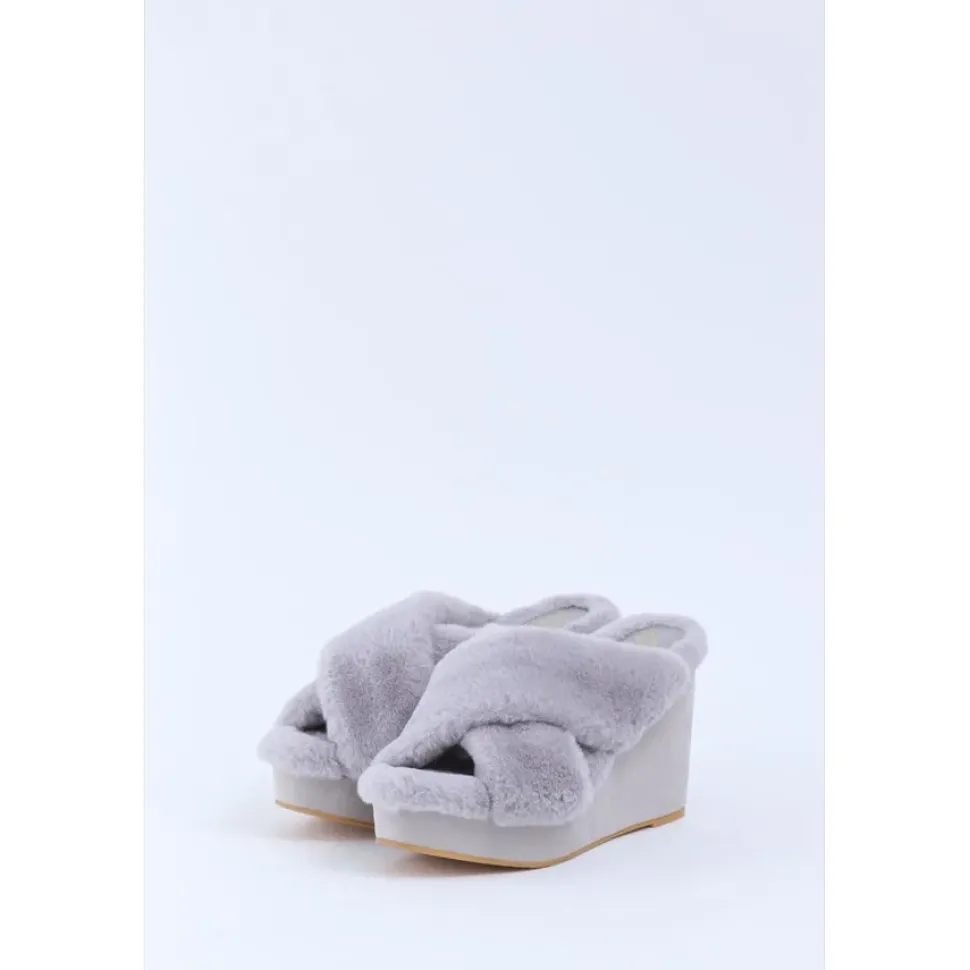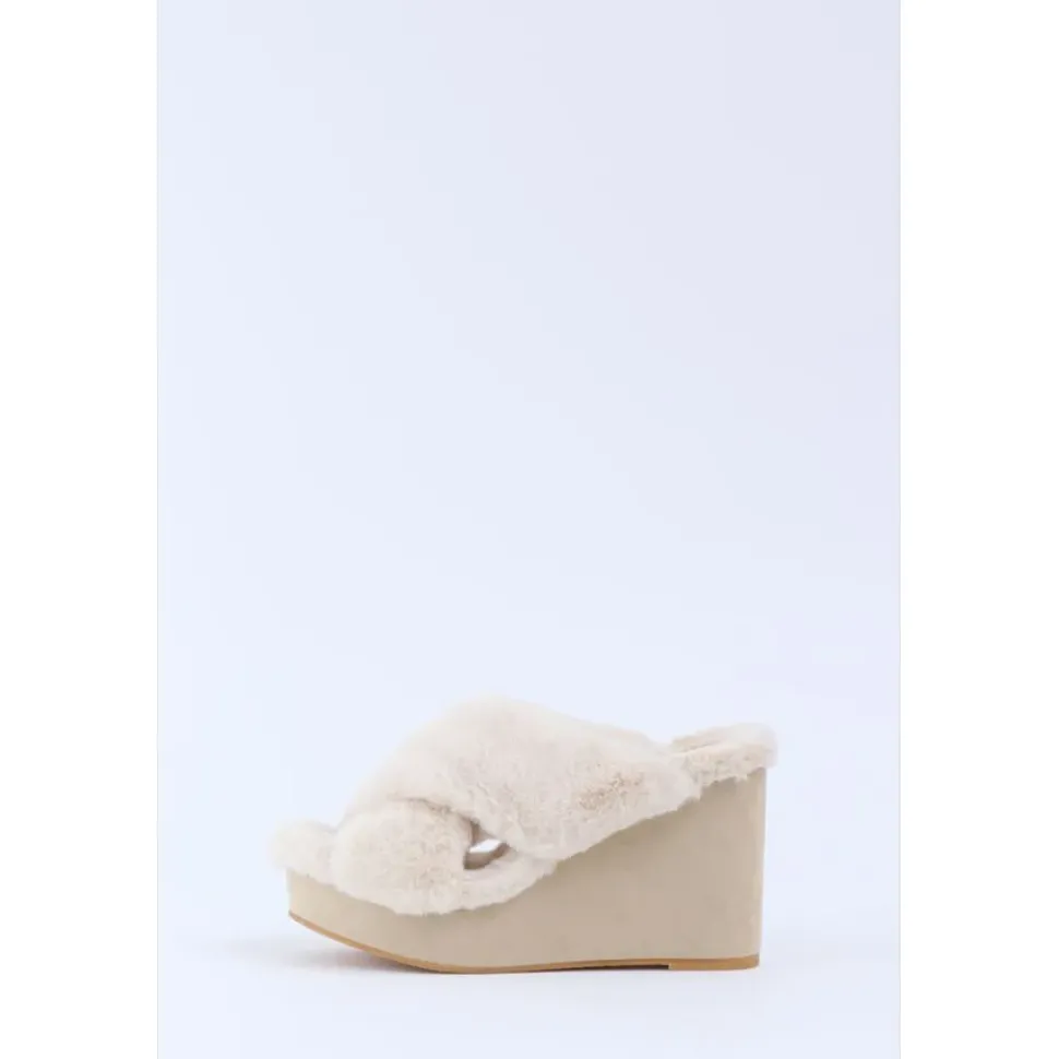 Product Name: Honey Salon Fur Cross Wedge Sandals